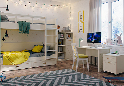 - Вы можете самостоятельно выбрать размер и комплектацию шкафов и кровати;