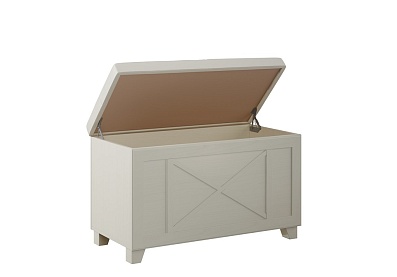 • Крышка банкетки — откидная, с мягким элементом. Буковые опоры покрыты эмалью в цвет корпуса;